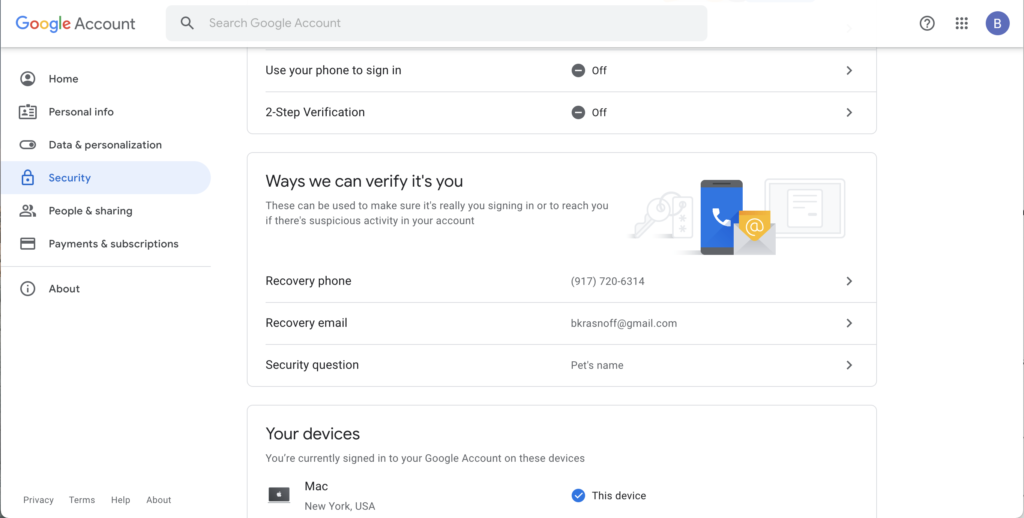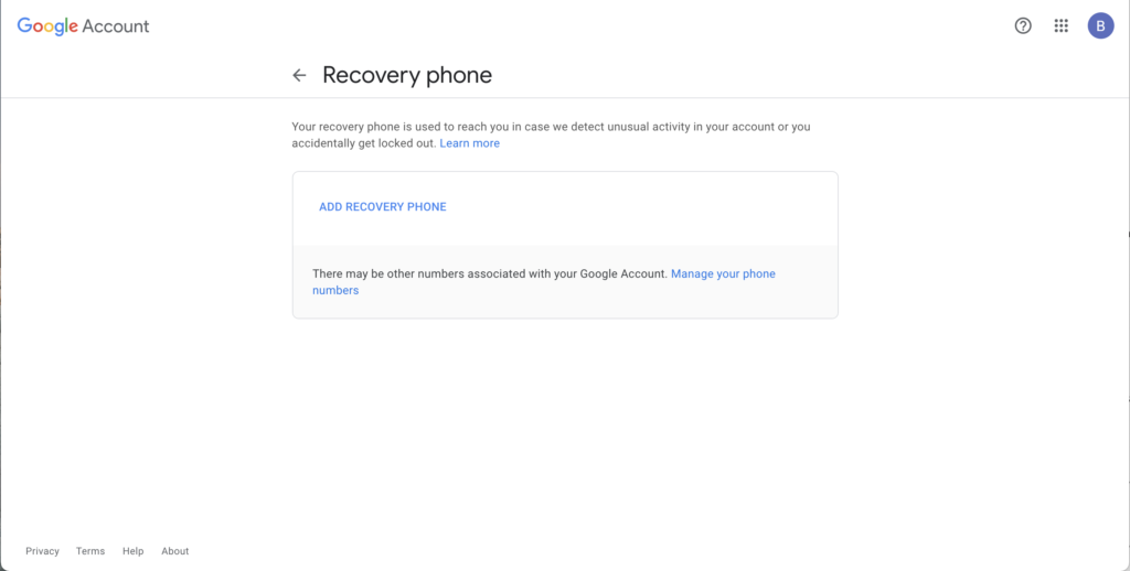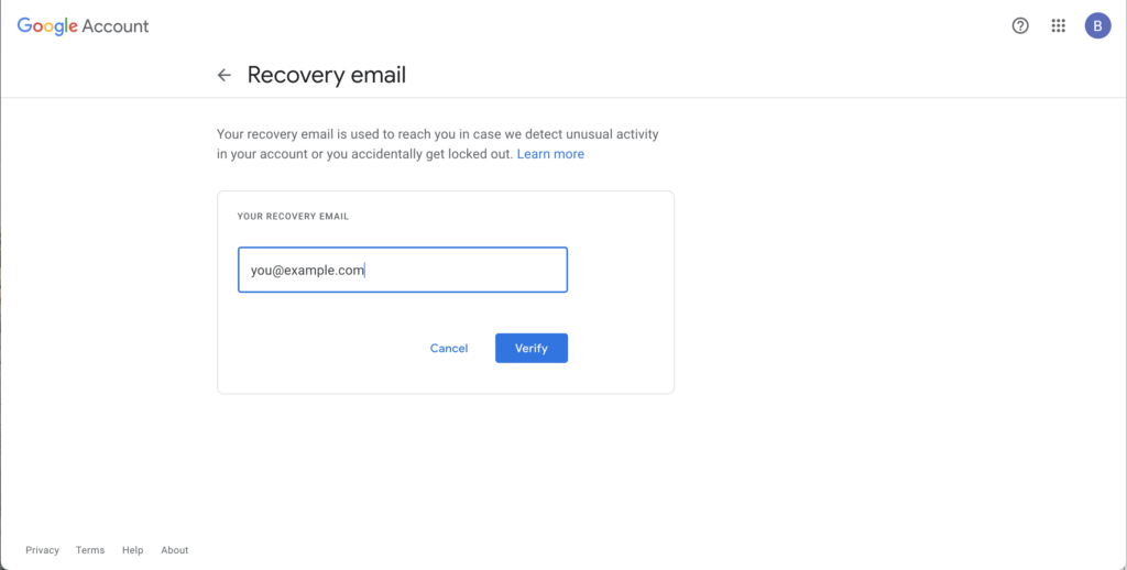 အဆင်ပြေ နိုင်သလောက် recovery info ကို အချိန်မီ Google ကို ပေးတာဟာ ကောင်းတဲ့ အချက်ပဲ ဖြစ်ပါတယ်။. ထို့ကြောင့် အထောက်အထားကို အတည်ပြုဖို့ လိုအပ်ပါက ရွေးချယ်စရာအချို့ ရှိပါတယ်။